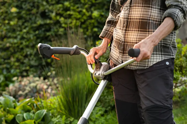 Le mécanisme de serrage intelligent vous permet de replier et d’ajuster la poignée sans effort et sans outil, afin que votre coupe-bordures soit rapidement prêt à l’emploi, au rangement ou au transport.